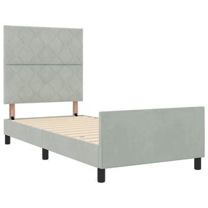 Bäddfjäder med huvudgavel Ljusgrå 90 x 190 cm Sammet