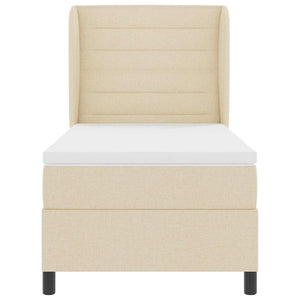 Bäddfjäder med madrass med huvudgavel Kräm 90 x 190 cm tyg