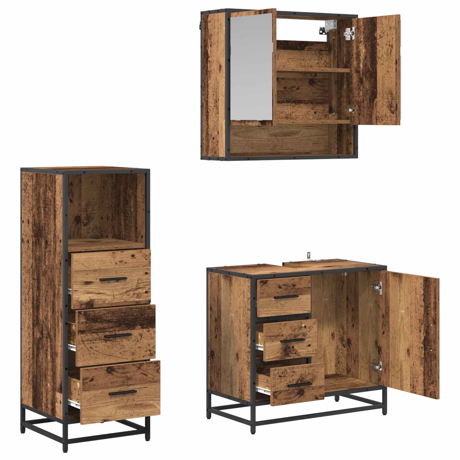 - Ingår komponenter: Setet kommer med ett spegelskåp, ett handfatsskåp och ett badrumsskåp - alla med massa förvaring för dina badrumsprylar. De släta dörrarna ger en fin finish och inuti är det smart organiserat. Svart metallpostben ger stabilitet och ser snyggt ut.