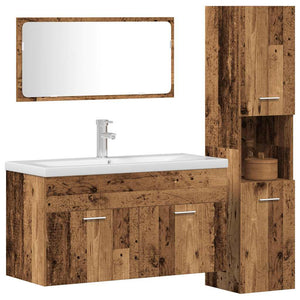 Badrumsmöbler set 3 delar åldrat trä konstruerat trä