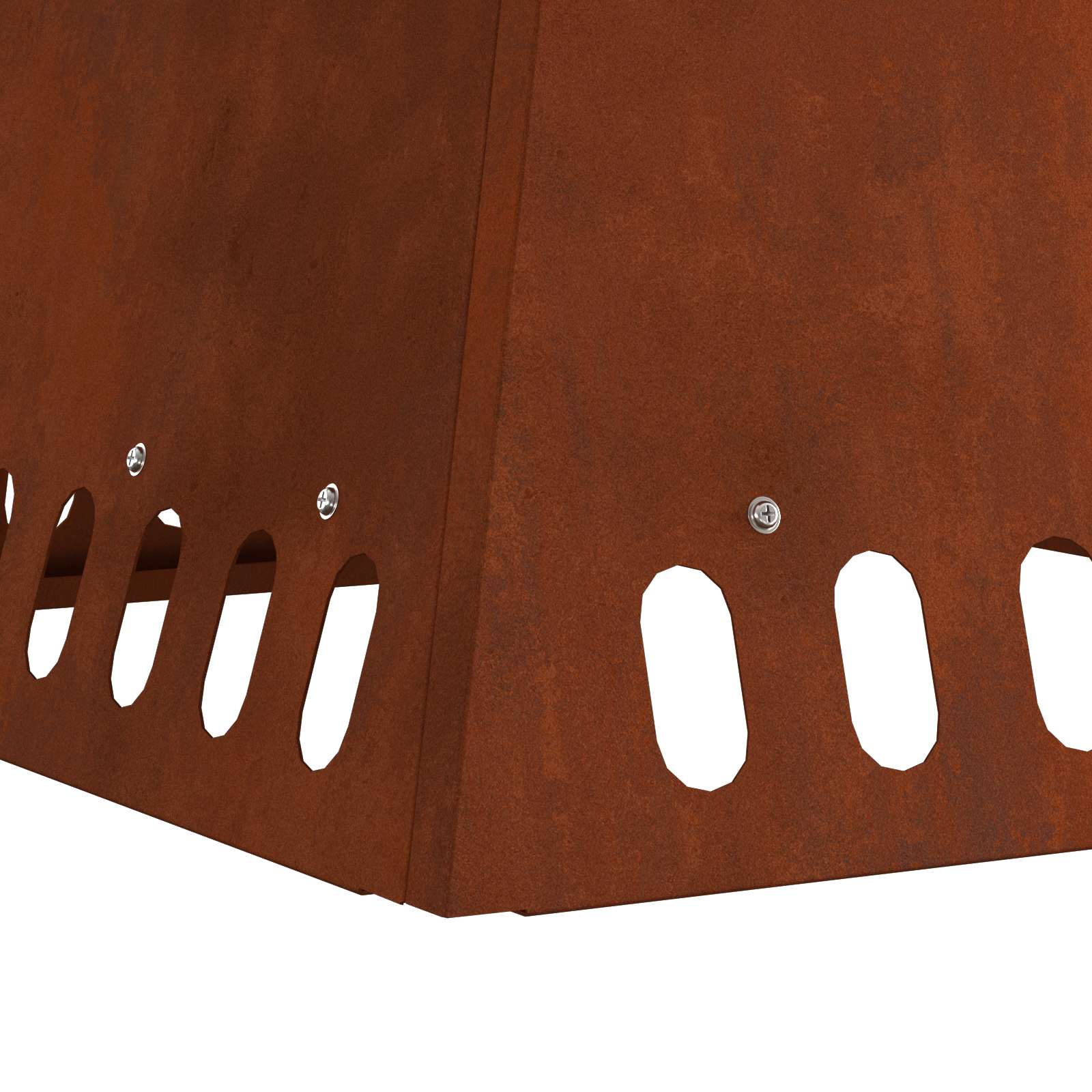 - Produkten är inte rostig än och har en normal metallfärg vid leverans, men rost kommer att bildas över tid. Du kan påskynda rostprocessen genom att spraya den med tvålvatten och saltvatten. För att hålla dina kläder fläckfria, undvik kontakt med rostskiktet.