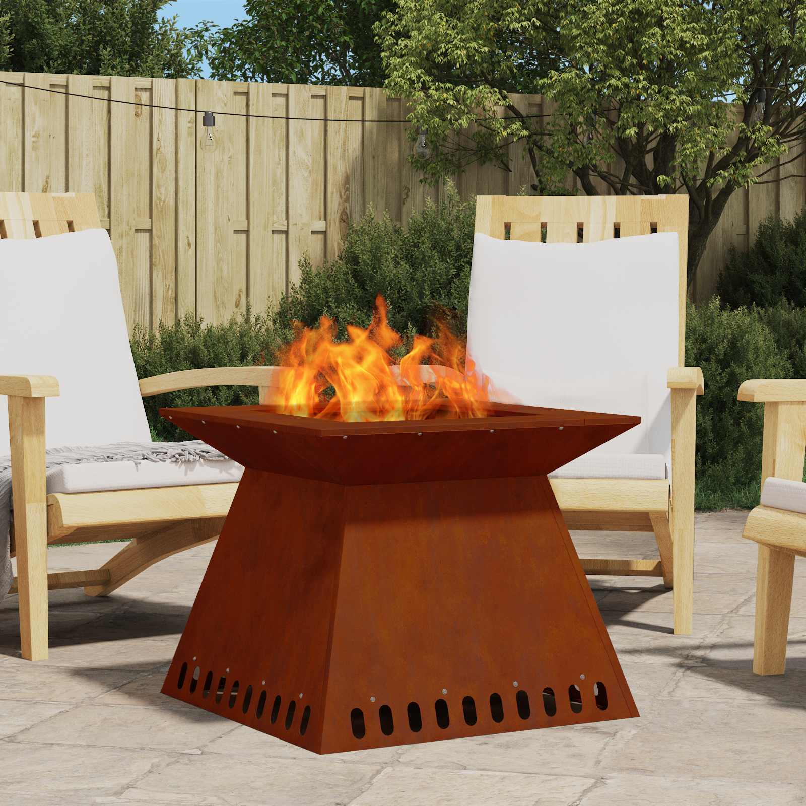 Den moderna fyrkantiga eldstaden kombinerar stil och funktionalitet på ett fantastiskt sätt, vilket gör din uteplats till en go plats för umgänge. Med sin stiliga och enkla design håller den dig varm och är verkligen en snackis som får din trädgård, altan eller bakgård att se superfin ut.