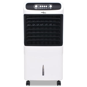 Denna flyttbara luftkylare är en intelligent kombination av ventilering och kylning och levereras en ström av kall lyft till rummet. Kyleffekten uppnås genom avdunstning av vatten eller is i vattenbehållaren på 12 liter. Den skiljer sig från konventionella fläktar då den är utformad för att höja luftfuktigheten. Du kan justera de tre hastighetsnivåerna enligt dina önskemål. Luftkylaren är enkel att flytta runt tack vare de 4 hjulen.