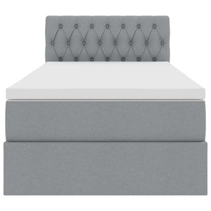 Förvaringssäng med LED med madrass Ljusgrå 100 x 200 cm tyg
