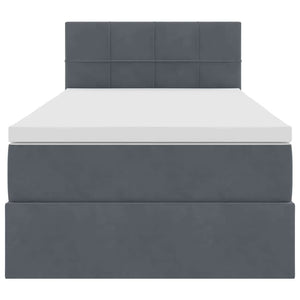 Förvaringssäng med LED med madrass Mörkgrå 90 x 190 cm Sammet