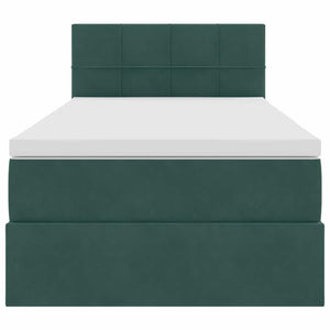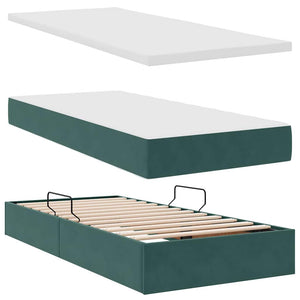 Förvaringssäng med LED med madrass Mörkgrön 90 x 190 cm Sammet