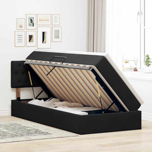 Förvaringssäng med LED med madrass Svart 90 x 190 cm Sammet