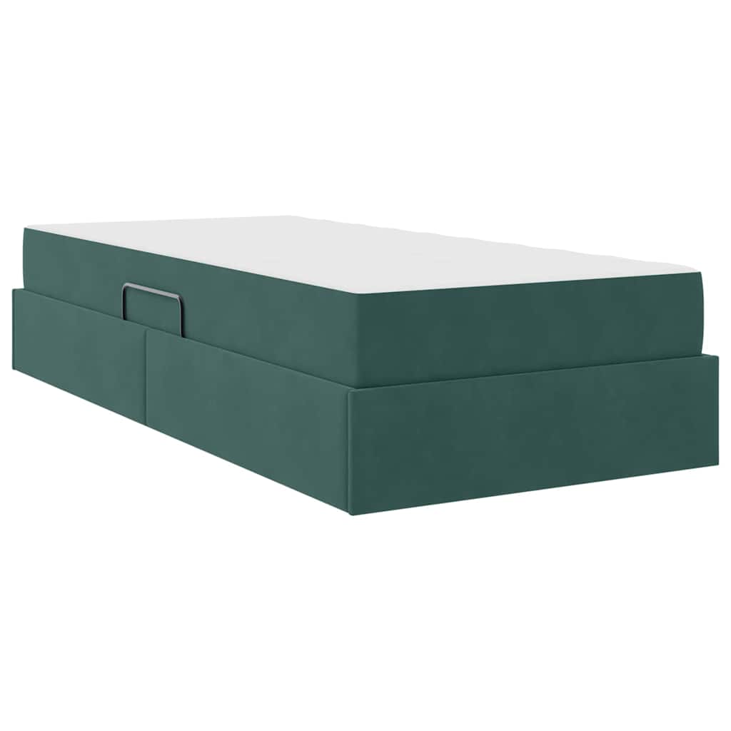 Förvaringssäng med madrass Mörkgrön 100 x 200 cm Sammet