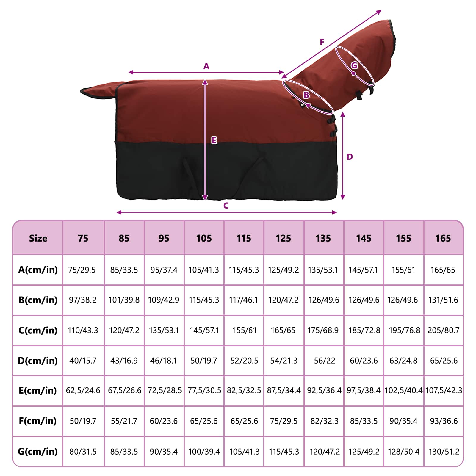 • Omfattande funktioner: Med ett avtagbart överdrag är filten lätt att sköta. Extra skydd, som ett svansskydd, håller hästen varm och skyddad mot vinden. Den hopfällbara designen gör den enkel att förvara när den inte används.