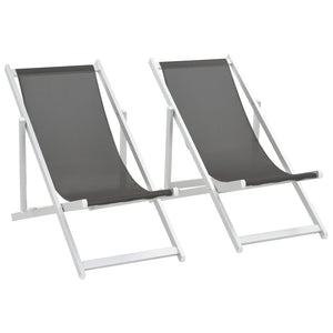 Hopfällbara strandstolar 2 st aluminium och textilen grå