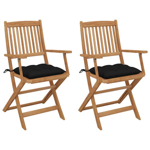 Dessa trädgårdsstolar är tillverkade i massivt akaciaträ, vilket gör dem robusta och stabila. Massivt akaciaträ är starka och tål slitage, så dessa utestolar innebär flera år av avkoppling. Dessutom kan stolarna fällas ihop för att spara utrymme när de inte används. De medföljande dynorna bidrar till extra komfort. Varje dyna har två uppsättningar rep för att fästa dem till stolarna.