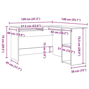 Hörnskrivbord Svart Ek 120 x 140 x 75 cm Konstruerat trä