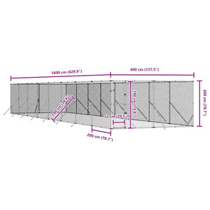 Hundgård för utomhusbruk silver 4x16x2 m galvaniserat stål