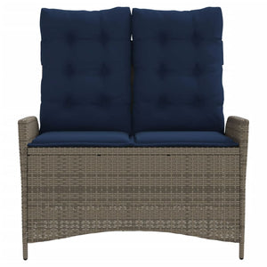 Justerbar trädgårdsbänk med dynor grå konstrotting