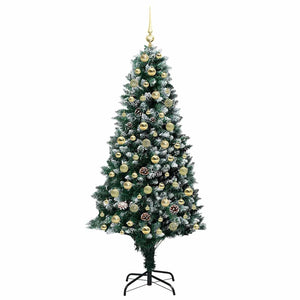 Den här PVC-julgran är en perfekt blandning av tradition och modern LED-belysning. Med sin konformade design, prydd med kottar och snö, passar den bra både inomhus och på skyddade uteplatser. Den ger en festlig atmosfär och skapar en magisk julstämning i ditt hem.