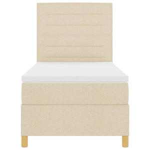 LED Box Säng med madrass med huvudgavel Kräm 90 x 200 cm tyg