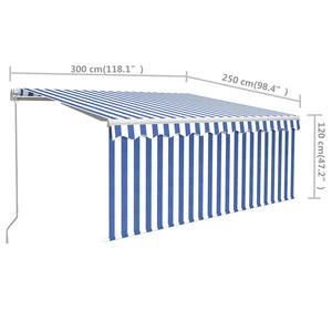 Manuell markis med rullgardin 3x2,5 m blå och vit
