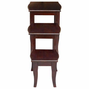 Detta set med klassiska stapelbara bord är både funktionella och snygga. De är gjorda för att passa fint i vilket hem som helst och är särskilt bra i små rum som vardagsrum eller sovrum. Varje bord staplas smidigt under det större, vilket gör dem perfekta när utrymmet är knapert. Med en tidlös design ger de en elegant och diskret skönhet. Mahognyträet ger dem en varm känsla som smälter in i både klassiska och moderna inredningar. De är bra för att sätta drycker på, visa upp dekorationer eller fungera som tillfälliga skrivbord.