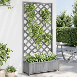 Odlingslåda med spaljé grå massivt granträ