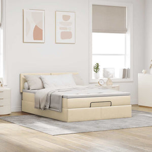 Ottoman säng med madrass gräddvit 140x190 cm tyg