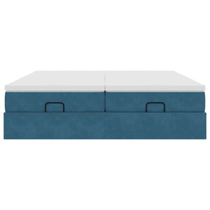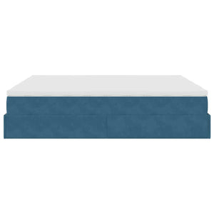 Ottoman sängram med madrasser mörkblå 200x200 cm sammet