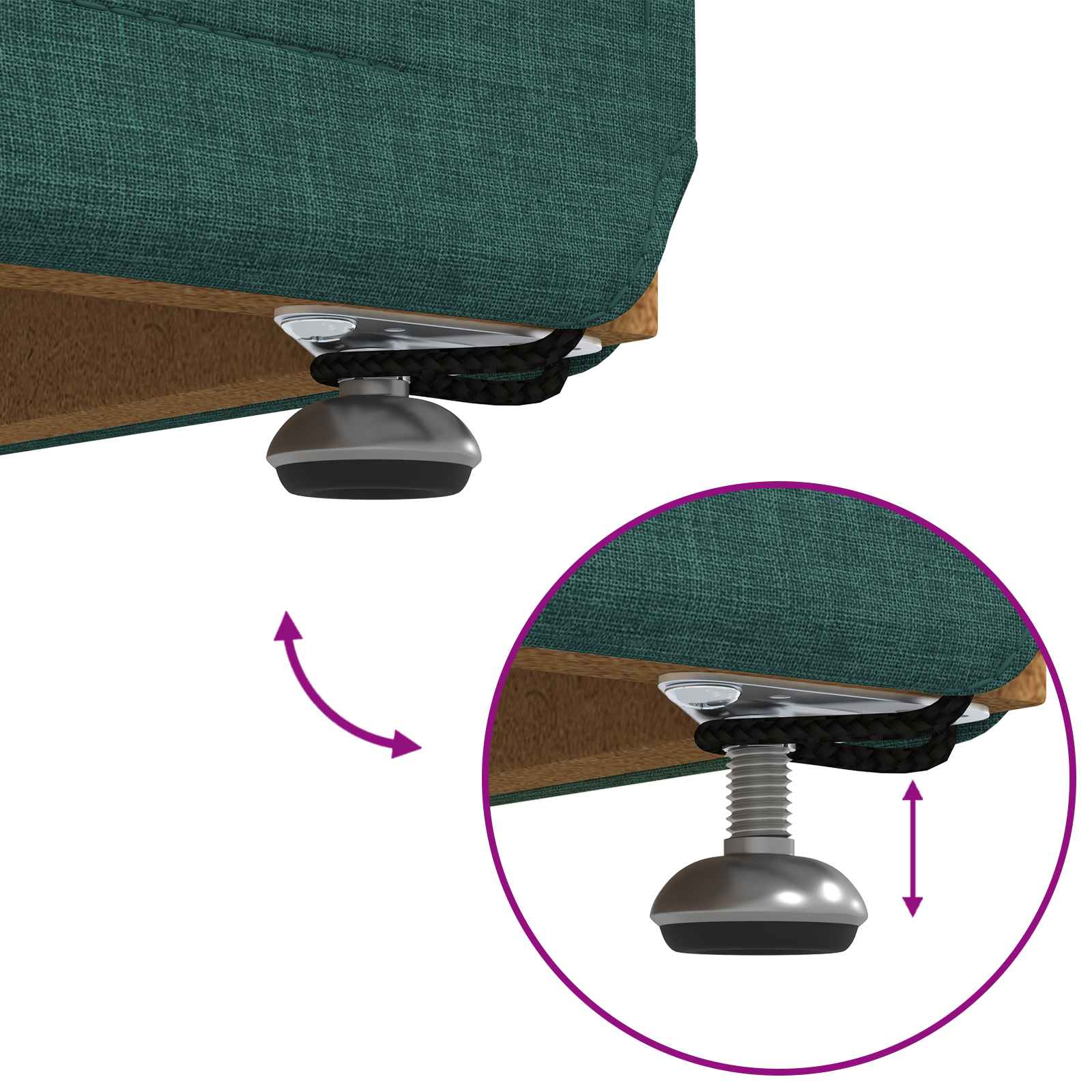 - Viktiga komponenter: Allt du behöver för enkel montering ingår: ben, rundhuvudsskruvar, en dyna, tygöverdrag och lådinsatser. Det här gör att du får en stabil och säker plats att sitta på.