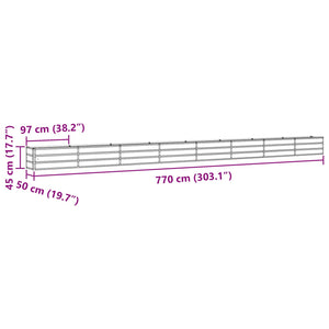 - Övergripande dimensioner: 770 x 50 x 45 cm (L x B x H)