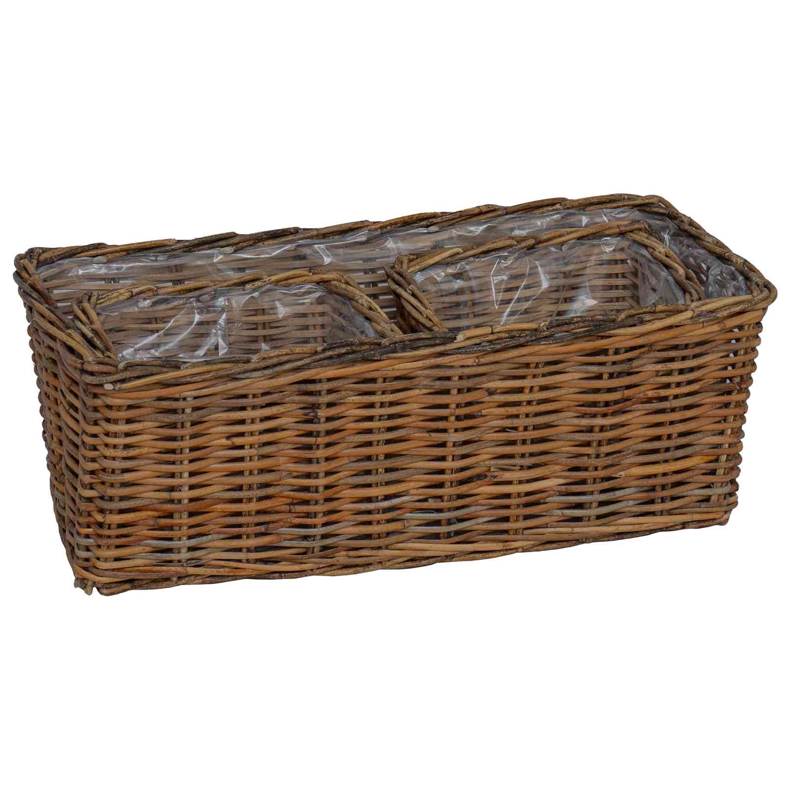 - Smart design Varje korg inkluderar ett avtagbart, vattentåligt plasthölje som skyddar ytorna från fukt och gör det enklare att sköta växter. Den eleganta, rektangulära formen går att placera på flera sätt, vilket gör den perfekt för olika dekorer, oavsett om du visar upp grönt eller har grejer du vill förvara.