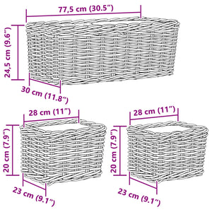Planteringskorg med lagring 3 pcs Brun Kubu Rattan