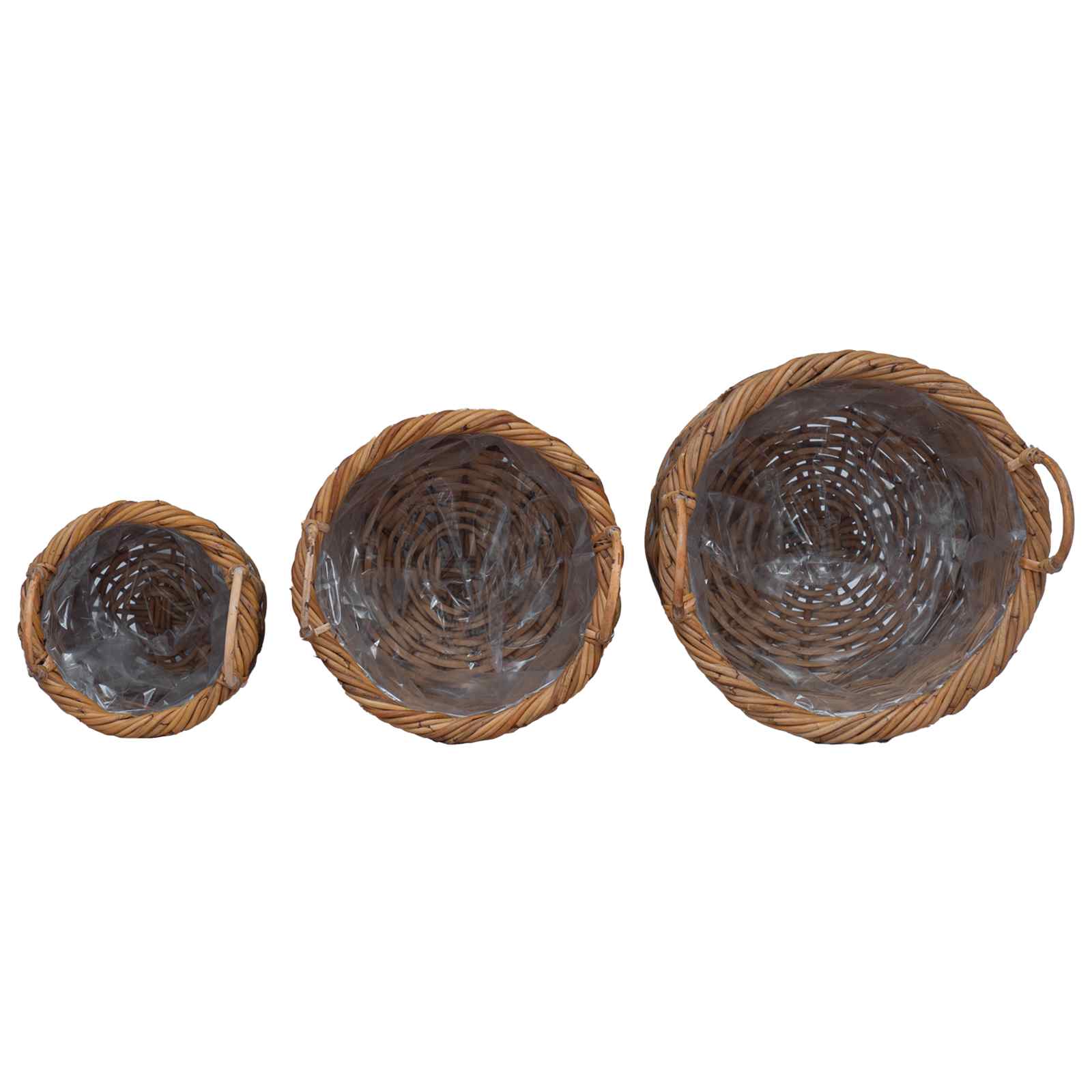 Planteringskorg med lagring 3 pcs Brun Kubu Rattan