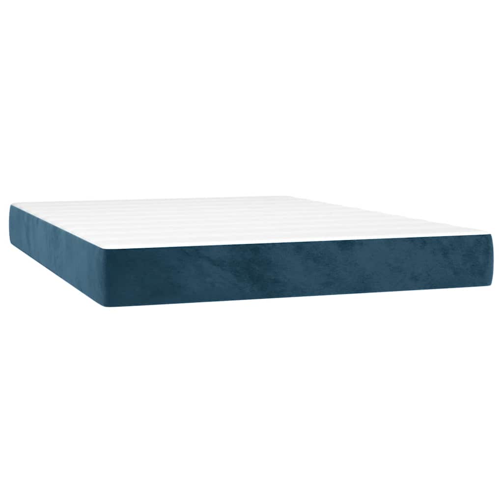 Resårsäng med madrass och LED mörkblå 140x190 cm sammet