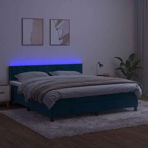 Hem Resårsäng med madrass och LED mörkblå 180x200 cm sammet