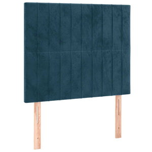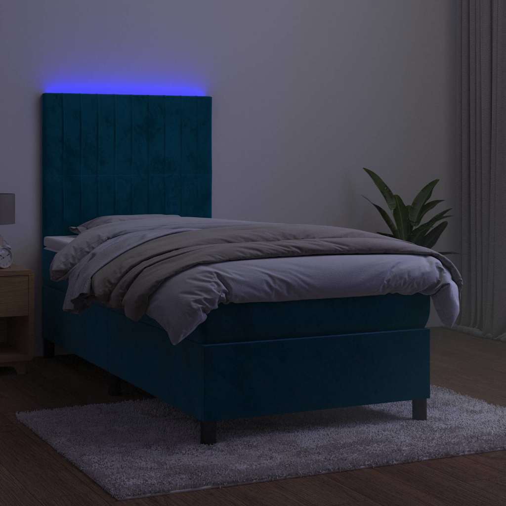 Ramsäng med madrass & LED mörkblå 90x200 cm sammet