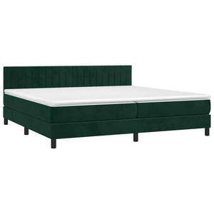 Resårsäng med madrass och LED mörkgrön 200x200 cm sammet
