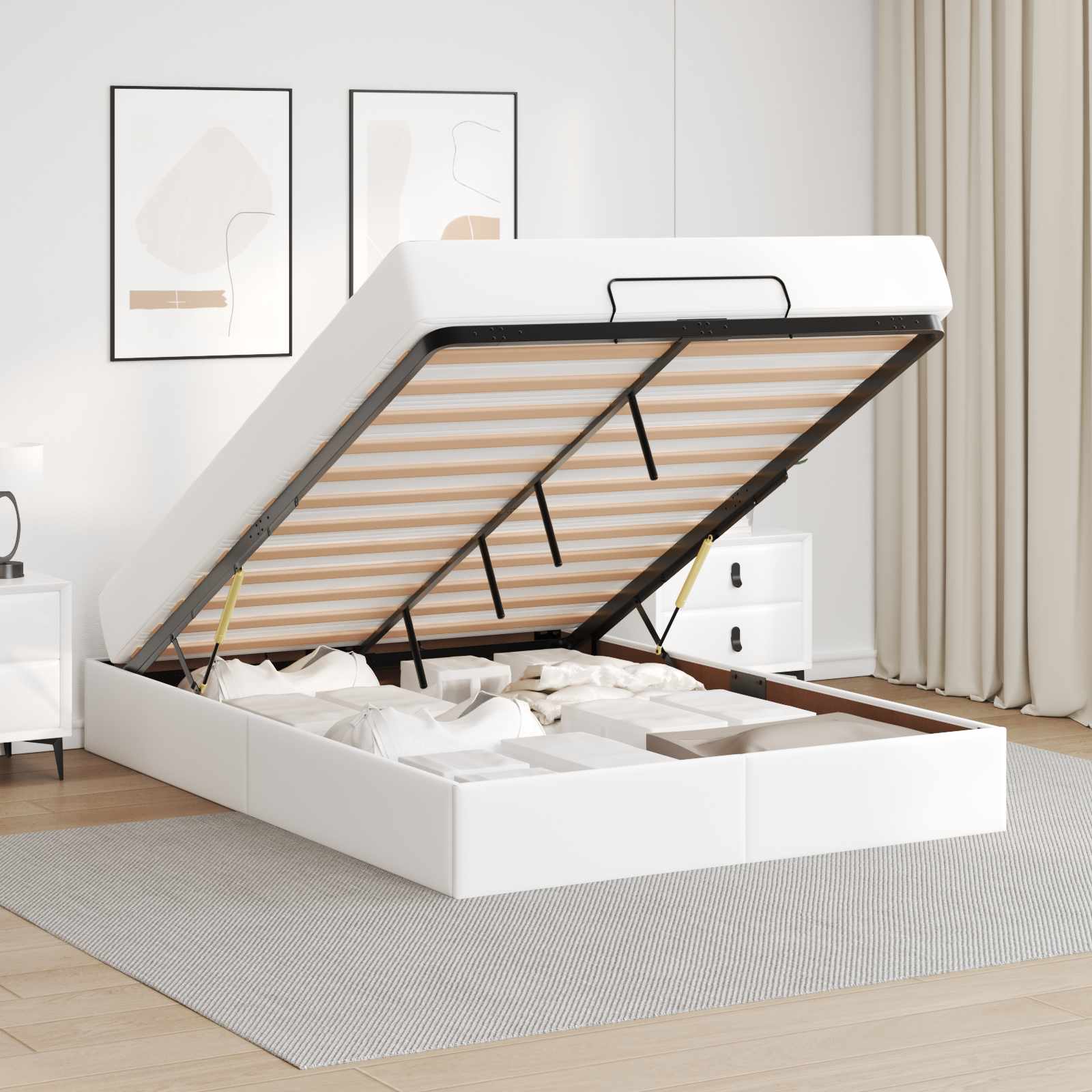 - Förvaringslösningar under sängen: Innovativa förvaringsalternativ under sängen ger plats för att effektivt organisera och förvara dina saker, vilket är perfekt för mindre sovrum. Håll rummet rent och ordnat genom att använda utrymmet under sängen, bra för att förvara säsongskläder eller extra sänglinne.