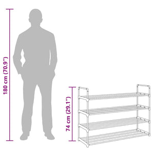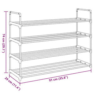 Skohylla med 4 hyllor metall och plast svart