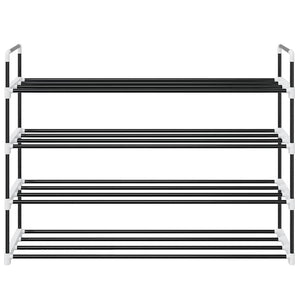 Den har en rörformad metallram, som är lätt men robust, vilket gör skostativet ganska hållbart och enkelt att flytta runt. Den har fyra generösa hyllor som har gott om utrymme för att hålla dina skor organiserade och ur vägen.