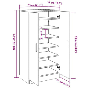 Skoskåpet har 7 hyllor bakom 2 dörrar och varje hylla har plats för cirka 2 par skor så skåpet rymmer totalt 14 par skor. Det här starka och hållbara skåpet är tillverkat i högkvalitativa material och är mycket praktiskt när du vill förvara skorna på ett snyggt och välordnat sätt.