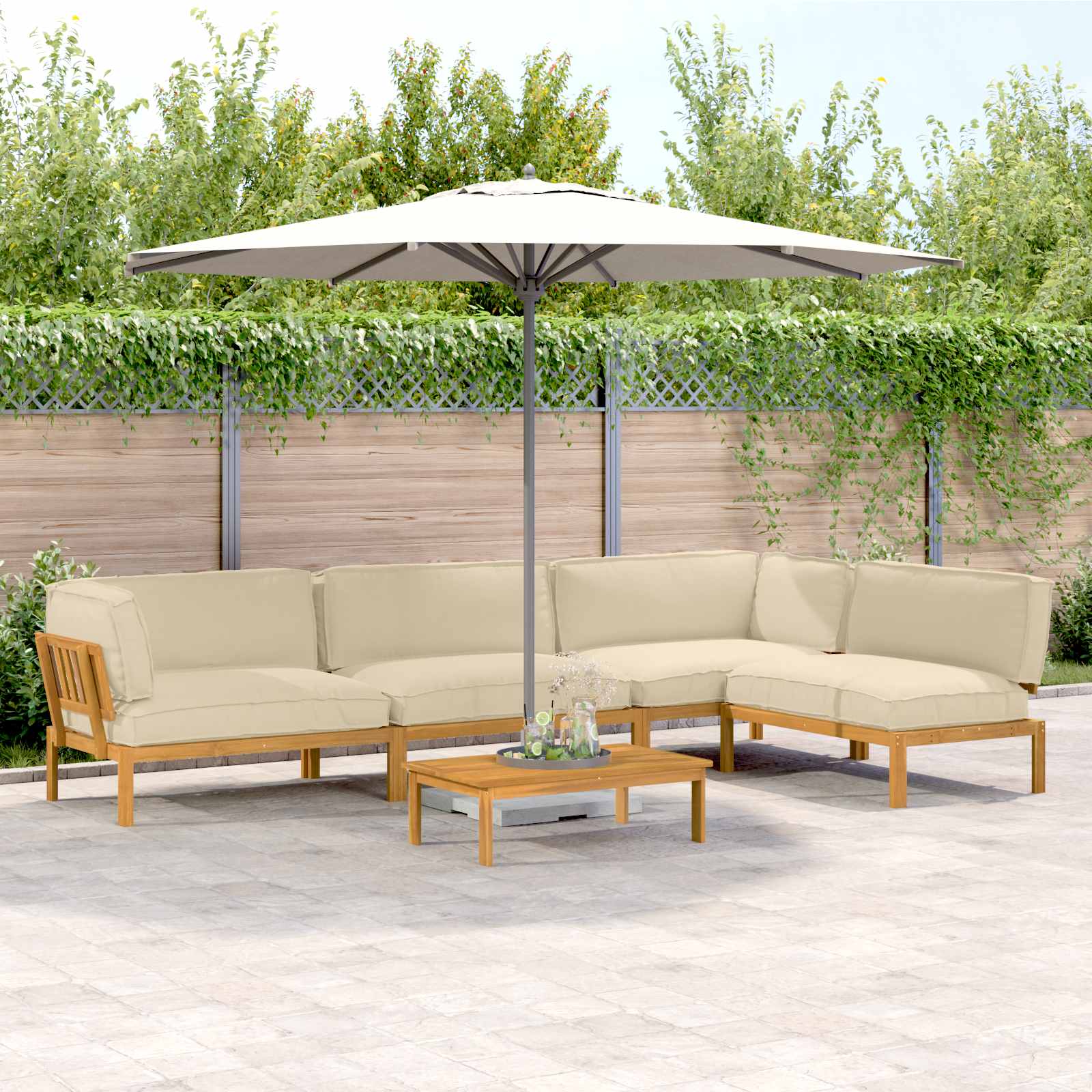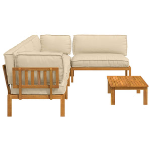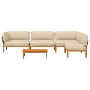 - Massiv akaciaträ konstruktion Soffgruppen är byggd av massivt akaciaträ, känt för sin hållbarhet och varma färger. Träet har en oljefinish som skyddar mot fukt och framhäver den naturliga färgen, vilket gör det perfekt för utomhusbruk.