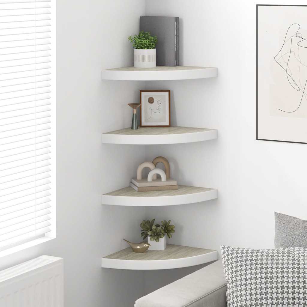 Svävande hörnhyllor 4 st ek och vit 35x35x3,8 cm MDF