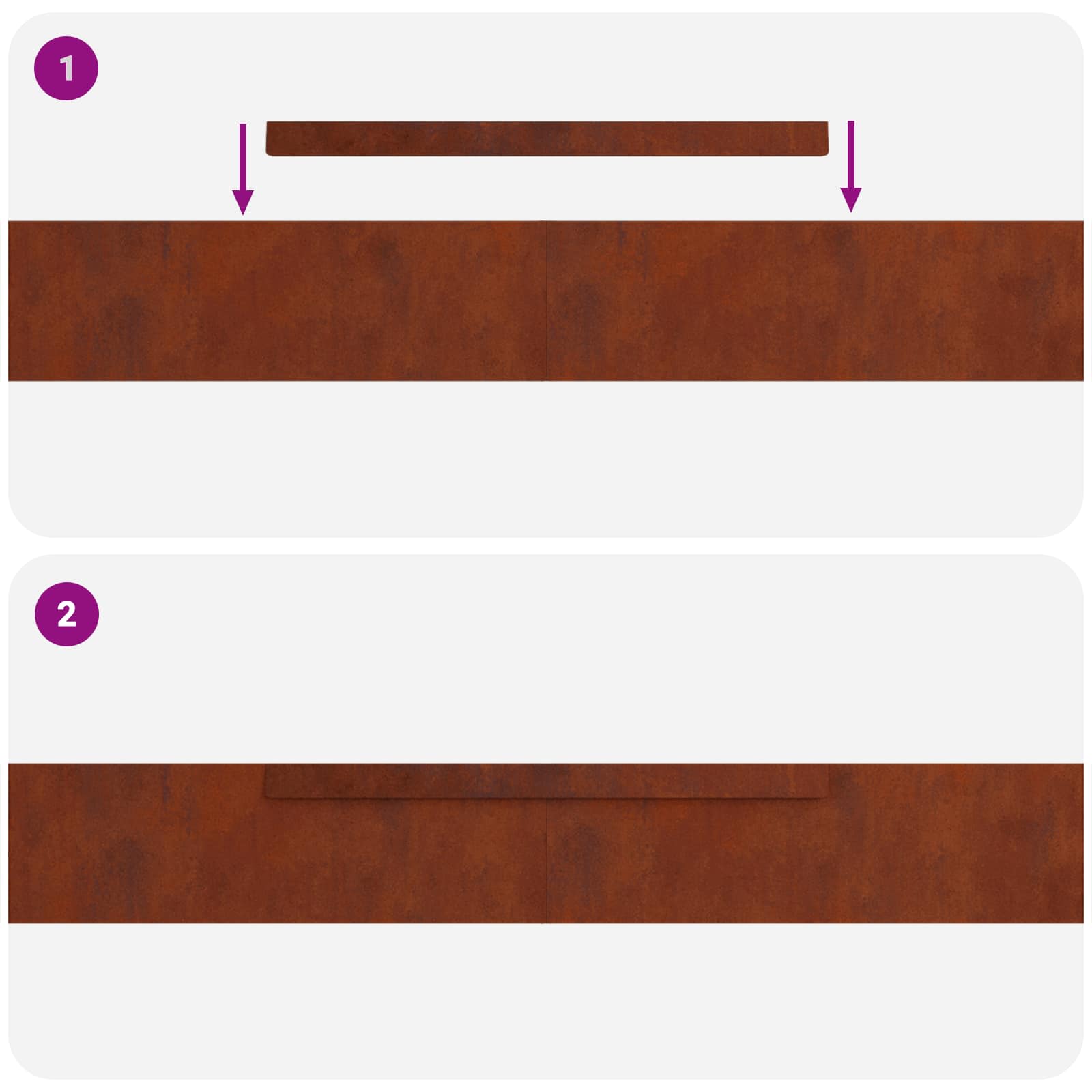- Produkten är inte rostig än och har en normal metallfärg vid leverans, men rost kommer att bildas över tid. Du kan påskynda rostprocessen genom att spraya den med tvålvatten och saltvatten. För att hålla dina kläder fläckfria, undvik kontakt med rostskiktet.