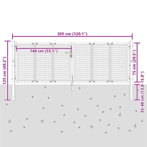 Trädgårdsgrind antracit 300x75 cm stål