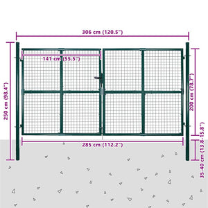 Trädgårdsgrind med nät och staket, dörr och vägggaller 300x200 cm