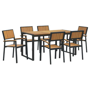 Detta moderna trädgårdsmöbelset slår alla förväntningar med sin stiliga design och smarta funktioner, perfekt för trädgårdar och terrasser. Kombineringen av massivt akaciaträ och stål ger en stilren känsla och är super för sommarens middagar, lugna kvällar och trevliga middagar i trädgården. Det är designat för att passa i alla trädgårdar, både med livfulla gröna inslag och minimalistiska ytor, vilket tilltalar alla som gillar ren stil och praktiska lösningar.