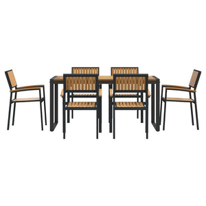 - Massivt Akaciaträ: Denna träsort ger naturlig rikedom och stil till detta matset. Det är hållbart och klarar utomhusklimat, vilket gör det till ett toppval för dina utemiljöer. Dess varma toner passar in med varje trädgård och skapar en inbjudande plats för måltider.