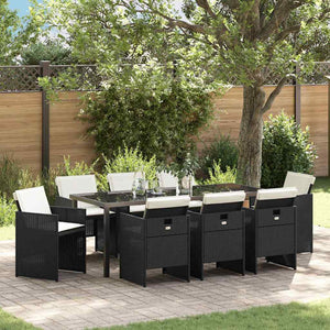 Trädgårdsmöbelset 9 pcs Svart konstrotting