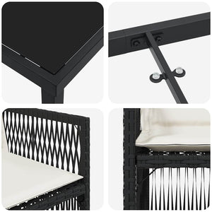- Skötsel & underhåll: För att förlänga livstiden på din utemöbel, använd ett överdrag när det inte används. Kuddarna kan enkelt tas av för rengöring, så att setet alltid ser fräscht och inbjudande ut under hela säsongen.