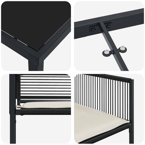 Detta Modern Garden Dining Set har en elegant och modern design för avkoppling och mat utomhus. Med en snygg svart pulverlack, är det ett riktigt bra tillskott till din trädgård eller terrass, och erbjuder både funktion och stil. Oavsett om du planerar en trädgårdsfest eller bara vill njuta av en lugn kväll, ger setets justerbara höjd och bekväma armstöd en mångsidig matupplevelse som passar både avslappnat och mer formellt.