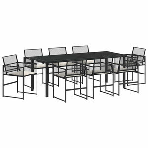 Trädgårdsmöbelset 9 pcs Svart Pulverlackerat stål