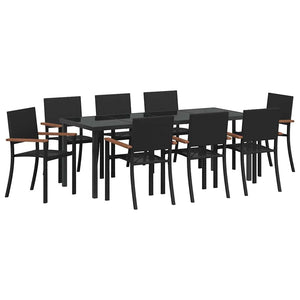 Trädgårdsmöbelset 9 pcs Svart Pulverlackerat stål